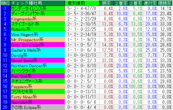阪神ジュベナイルフィリーズの種牡馬系統別成績(上位20位まで)