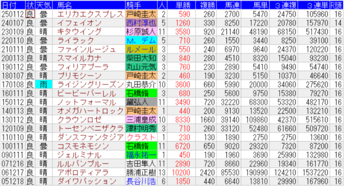 フェアリーSの配当一覧(出目)