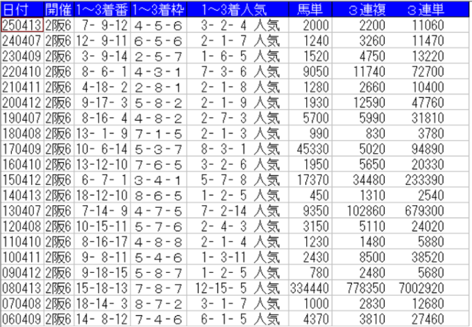 桜花賞の配当一覧(出目)