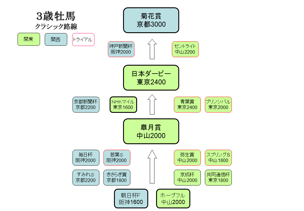 | 日付 | 馬名 | 皐月賞 | ダービー | 菊花賞 |