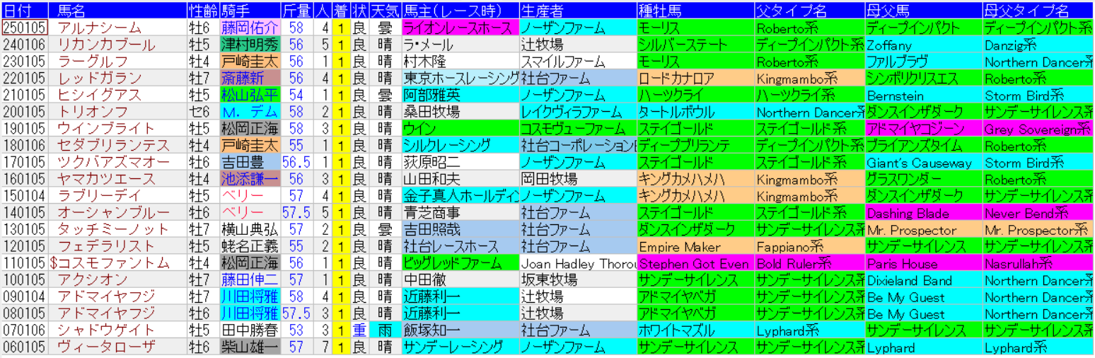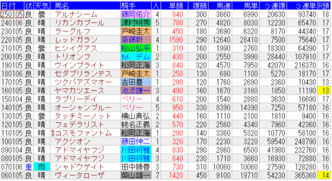 中山金杯の1着馬の馬データ
