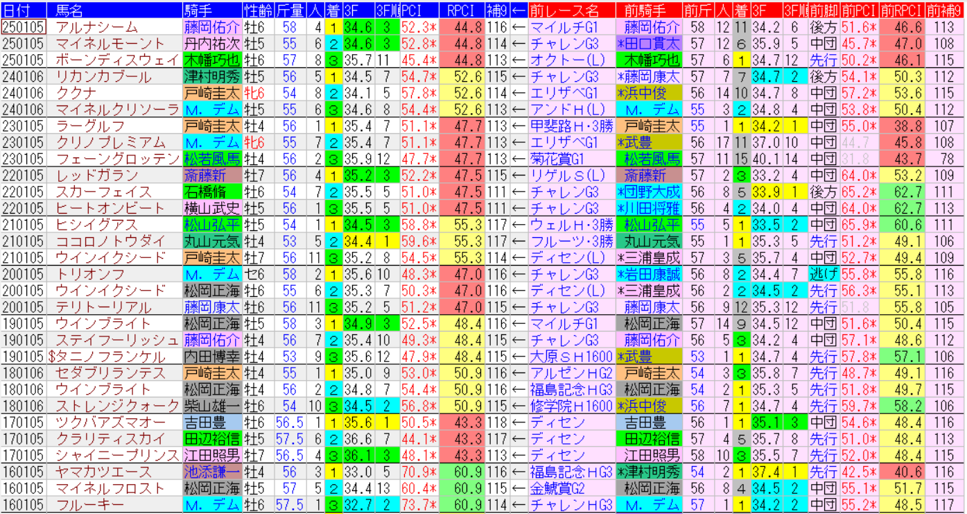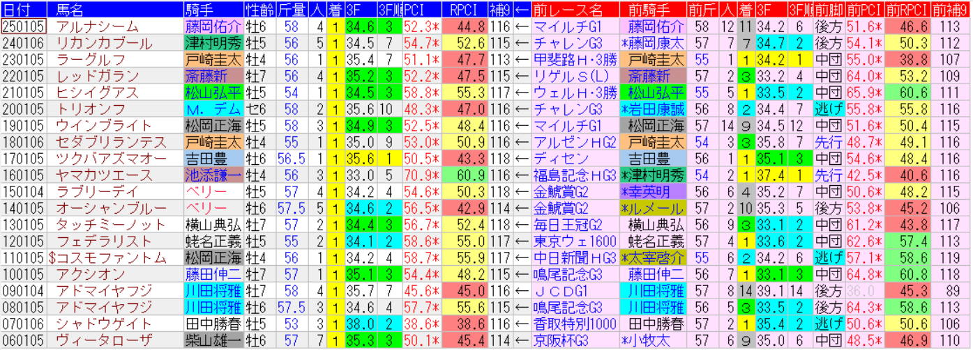 中山金杯の1着馬の前走成績