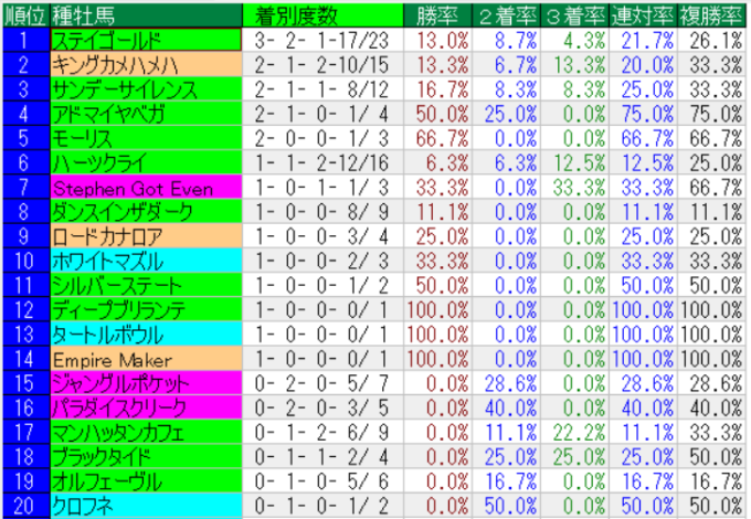 中山金杯の種牡馬成績(上位20位まで)