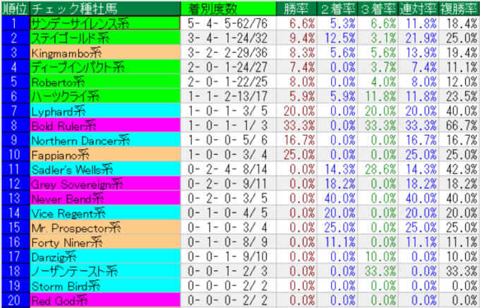 中山金杯の種牡馬系統別成績(上位20位まで)