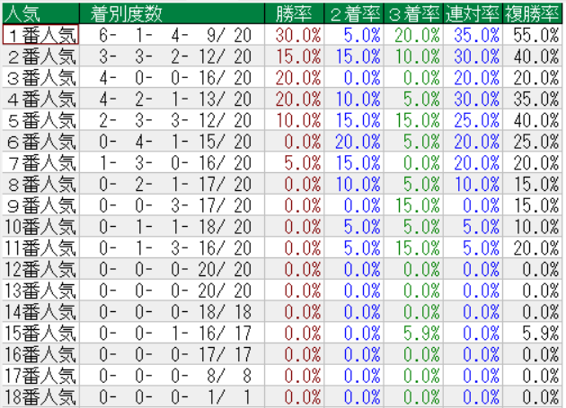 中山金杯の人気別成績