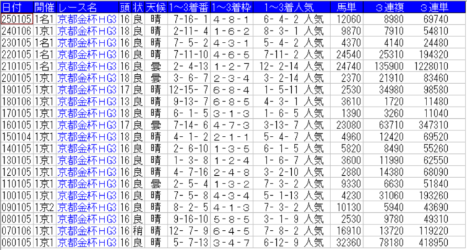 2025年京都金杯の過去20年のデータ一覧!1着馬の血統別成績や前走成績、配当一覧など、必見の情報を公開