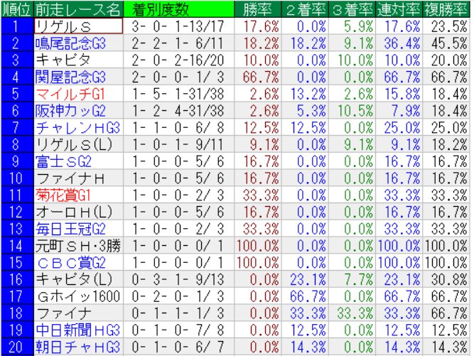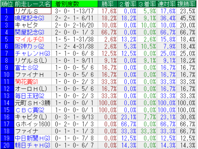 京都金杯の1~3着馬の前走成績(過去10年分)
