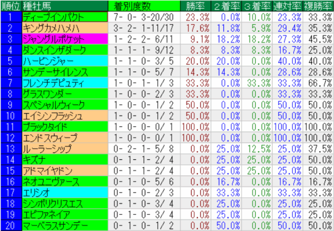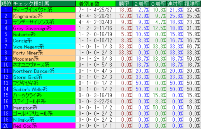 京都大賞典の種牡馬系統別成績(上位20位まで)