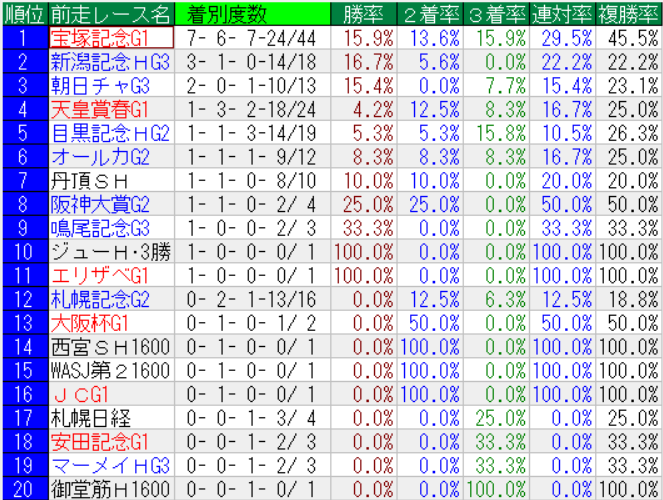京都大賞典の1~3着馬の前走成績(過去10年分)