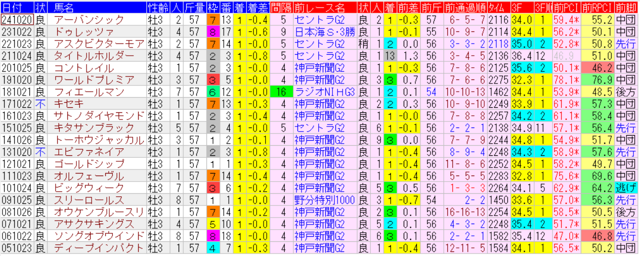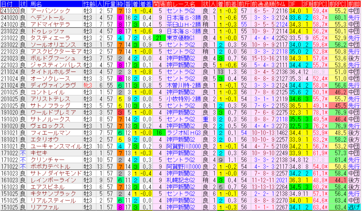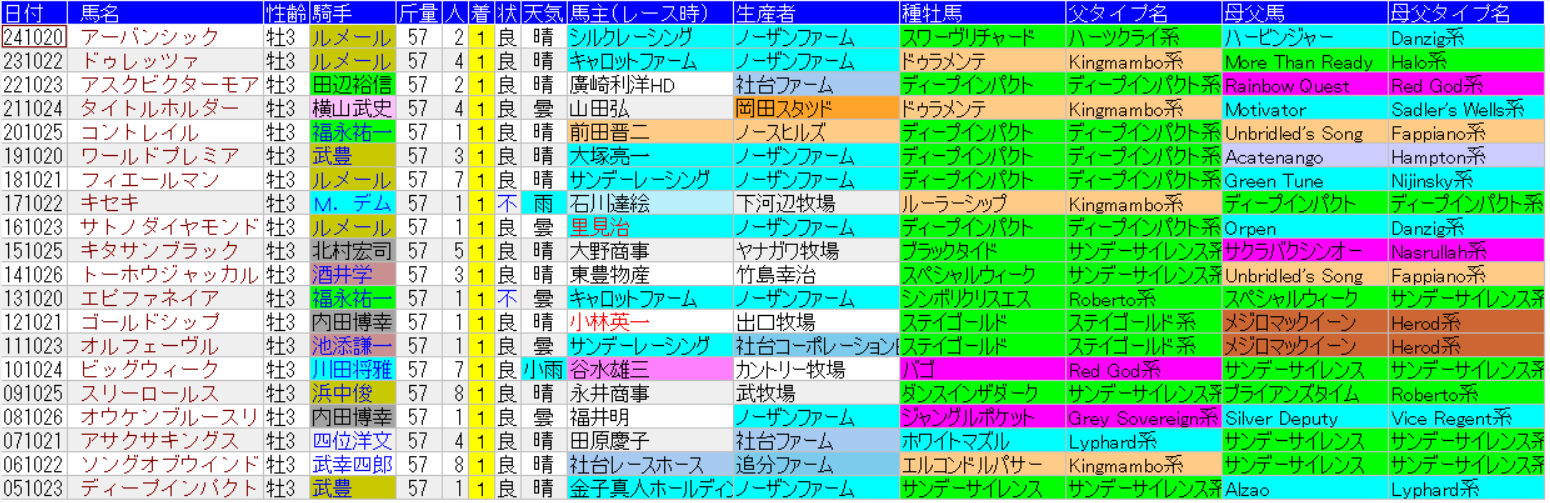 菊花賞の1着馬の馬データ