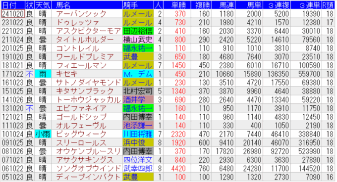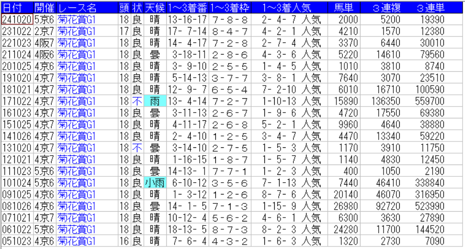 菊花賞の配当一覧(出目)