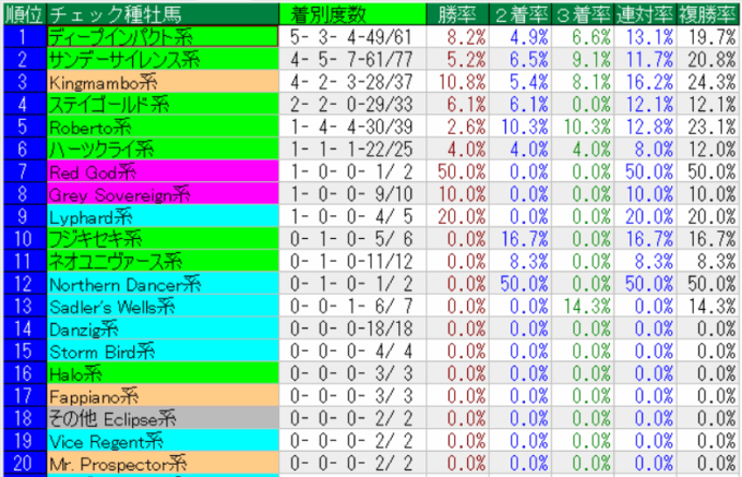 菊花賞の種牡馬系統別成績(上位20位まで)
