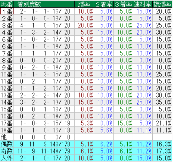 菊花賞の馬番別成績