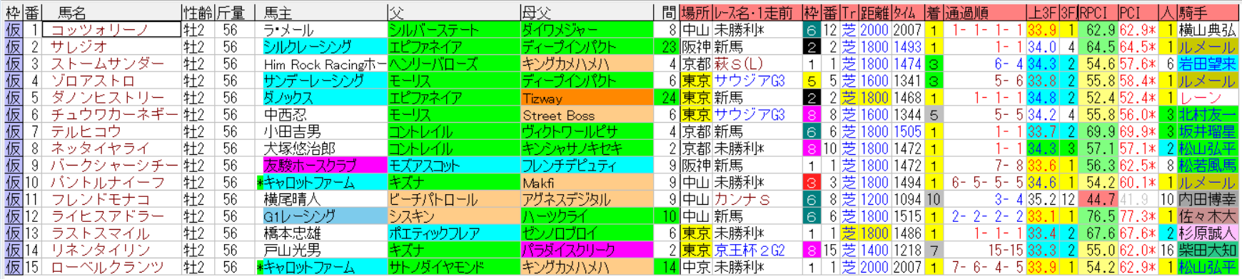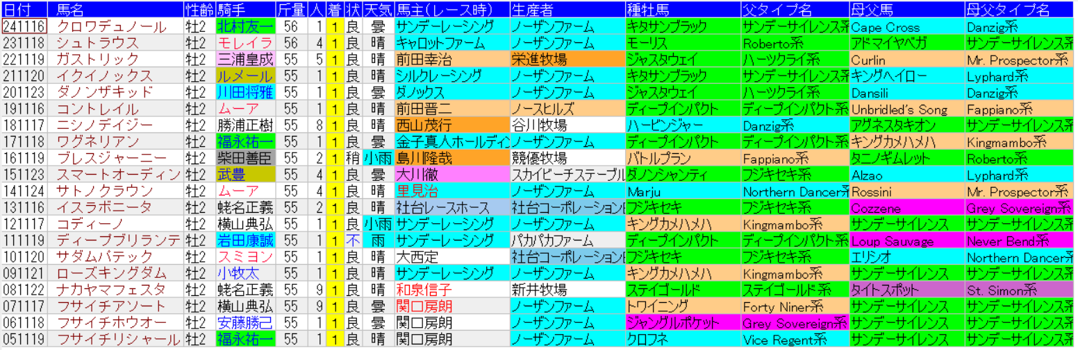 東京スポーツ杯の1着馬の馬データ