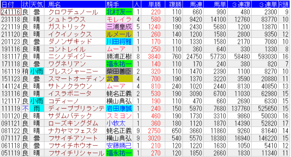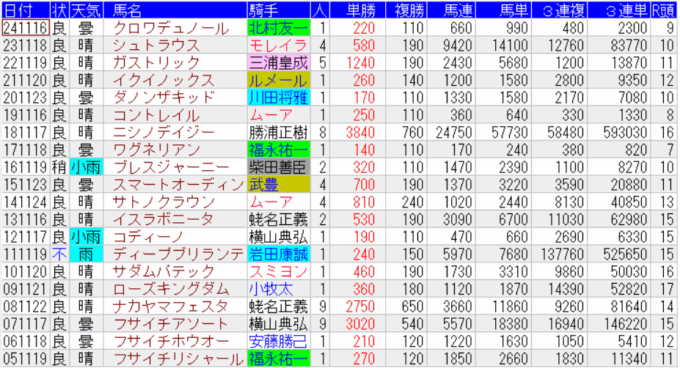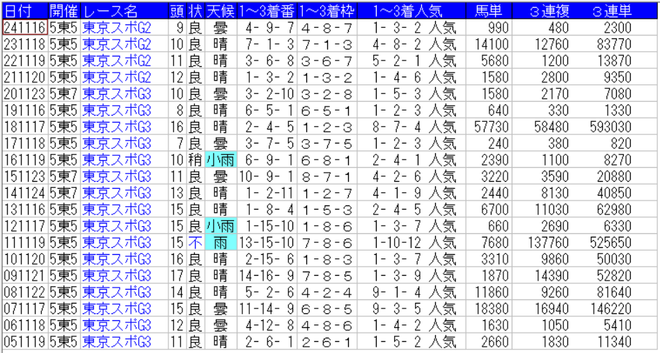 東京スポーツ杯の配当一覧(出目)