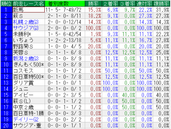 東京スポーツ杯の前走レース別成績(上位20位まで)