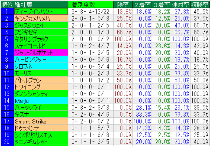 東京スポーツ杯の種牡馬成績(上位20位まで)