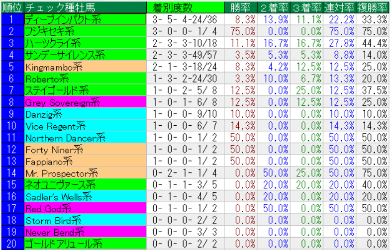 東京スポーツ杯の種牡馬系統別成績(上位20位まで)