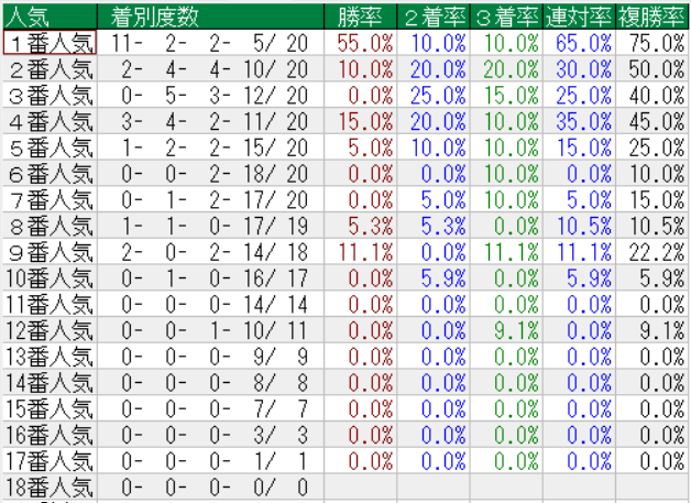 東京スポーツ杯の人気別成績