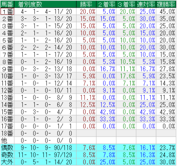 東京スポーツ杯の馬番別成績