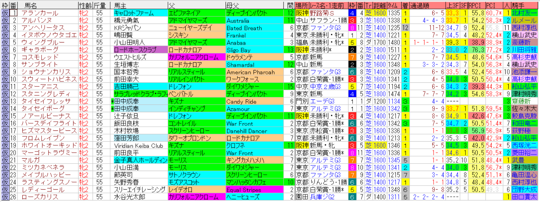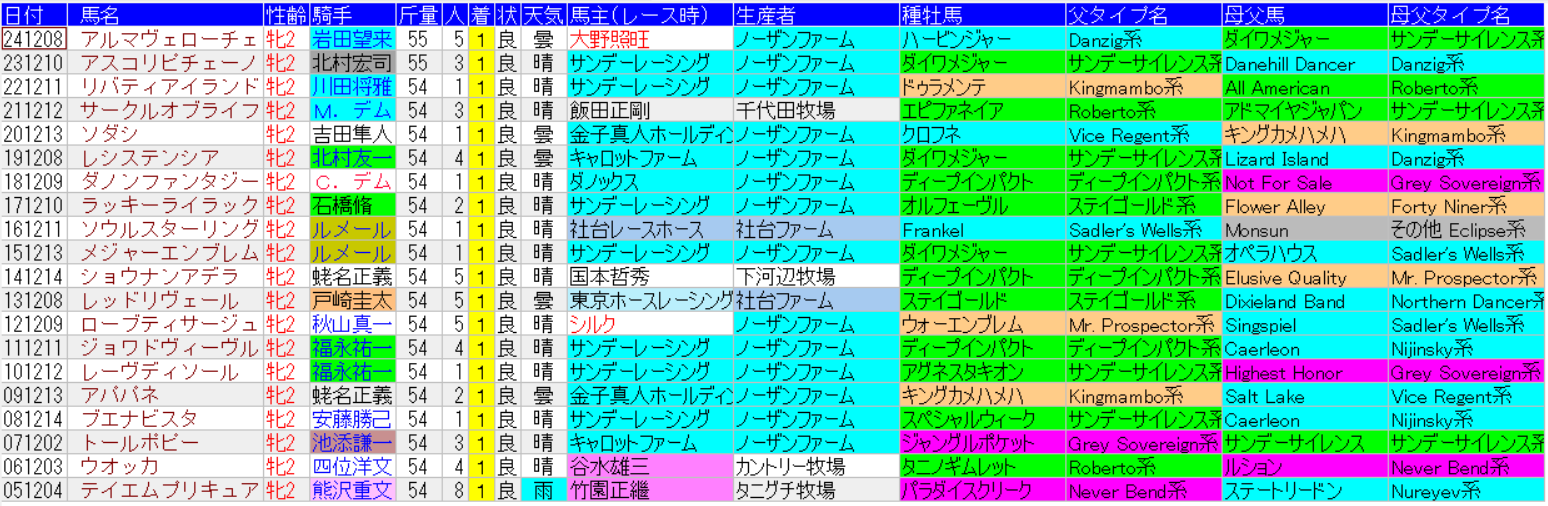 阪神ジュベナイルフィリーズの1着馬の馬データ