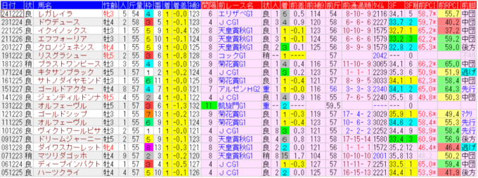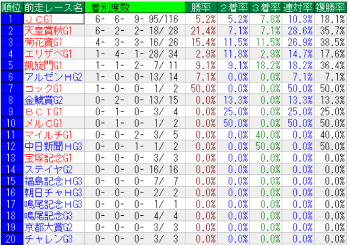 有馬記念の前走レース別成績(上位20位まで)