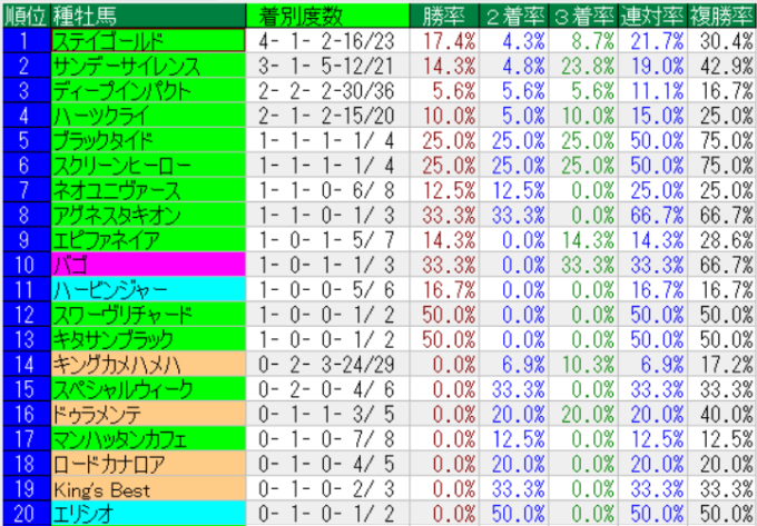 有馬記念の種牡馬成績(上位20位まで)