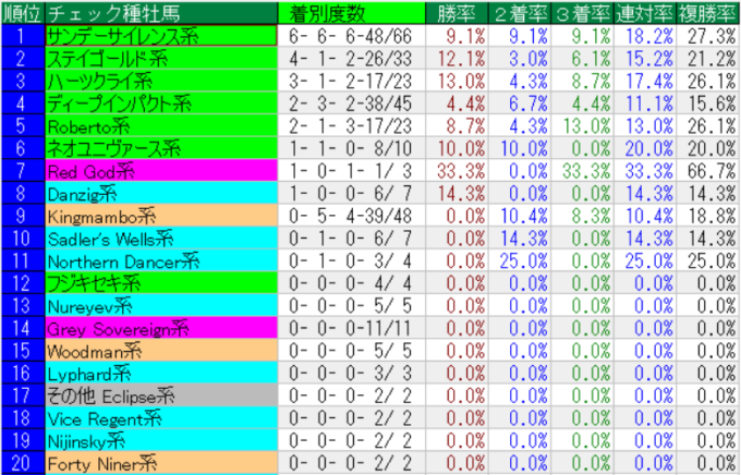 有馬記念の種牡馬系統別成績(上位20位まで)