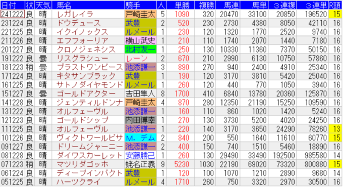 有馬記念の配当一覧(出目)