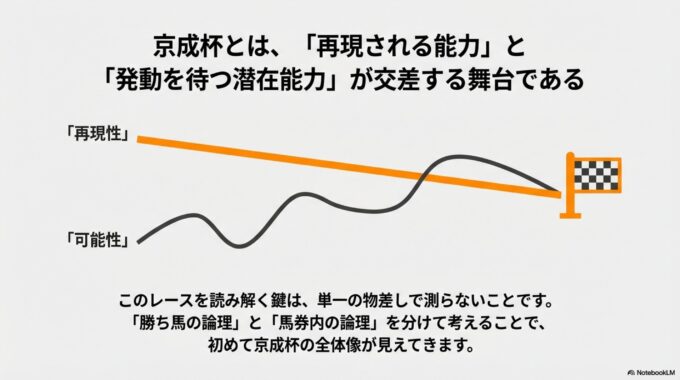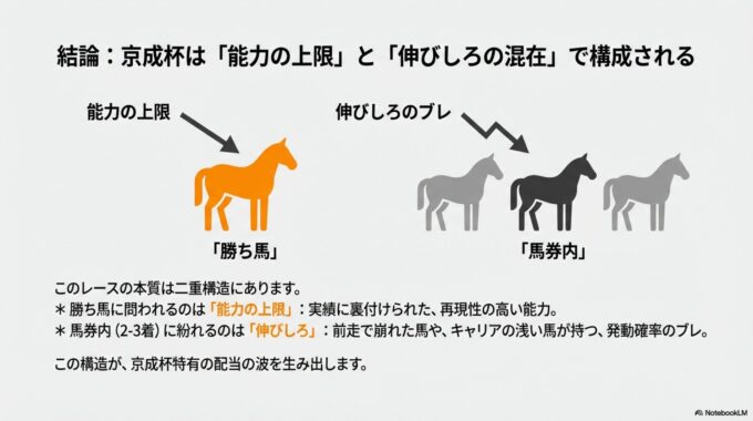 「勝ち馬は“能力の上限”が問われ、馬券内は“伸びしろ(発動確率のブレ)”が混ざるレース」