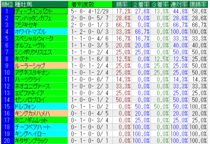 きさらぎ賞の種牡馬成績(上位20位まで)