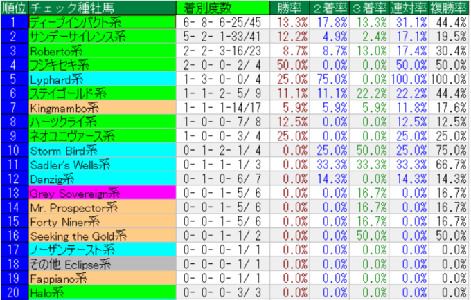 きさらぎ賞の種牡馬系統別成績(上位20位まで)