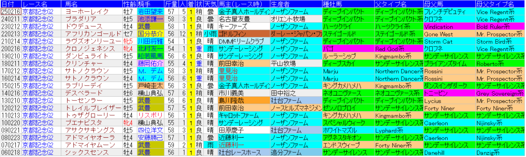 2026年京都記念の過去20年のデータ一覧!1着馬の血統別成績や前走成績、配当一覧など、必見の情報を公開