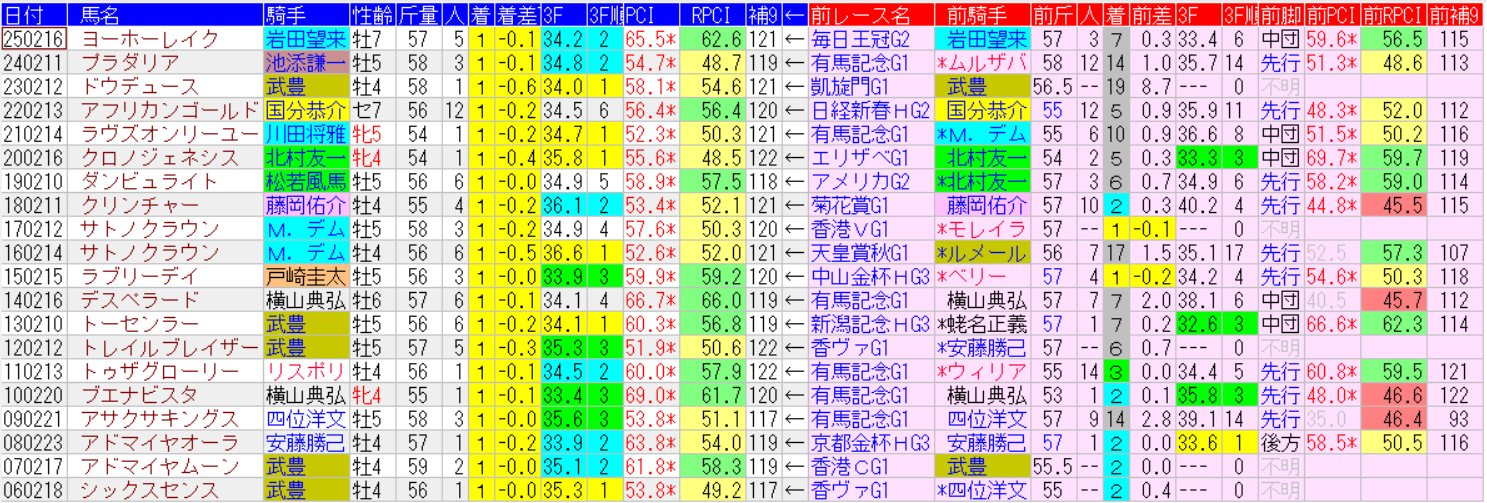 京都記念の過去20年の成績を集計し、1着馬の馬データ、1着馬の前走成績、前走レース別成績、血統別(種牡馬)成績、配当一覧など必見データ