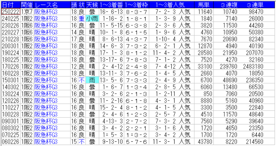 2026年阪急杯の過去20年のデータ一覧!1着馬の血統別成績や前走成績、配当一覧など、必見の情報を公開