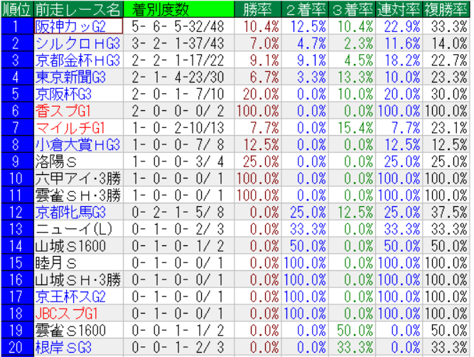 阪急杯の1~3着馬の前走成績(過去10年分)