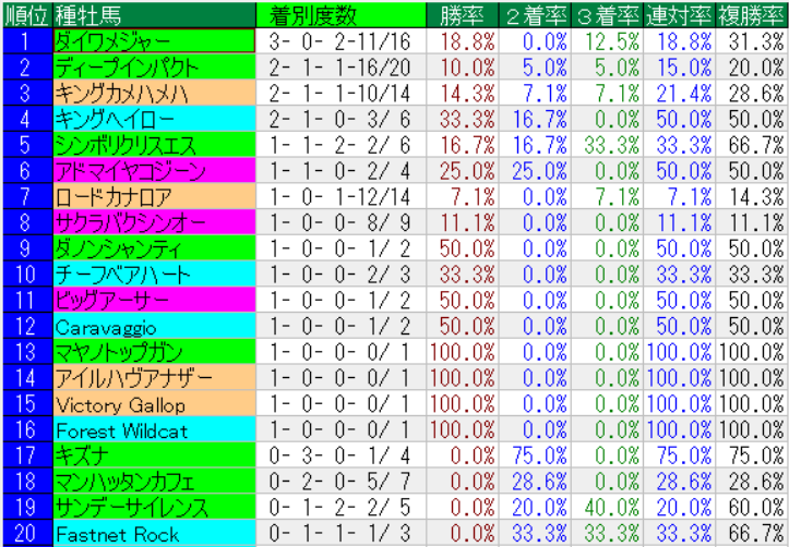 阪急杯の種牡馬系統別成績(上位20位まで)