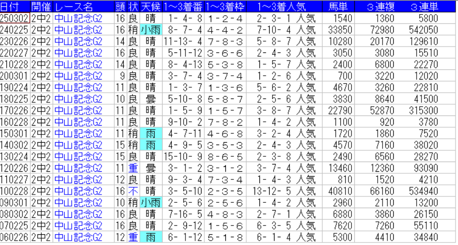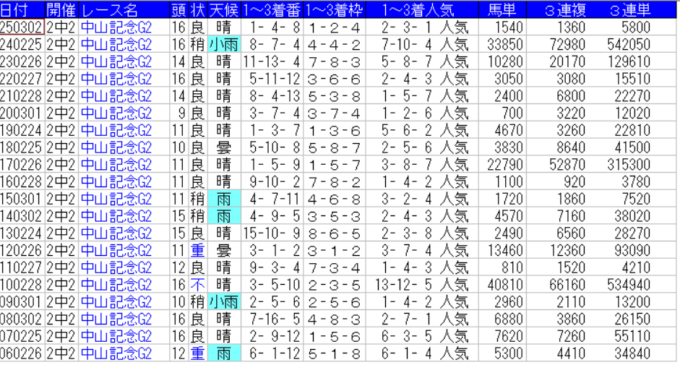 2026年中山記念の過去20年のデータ一覧!1着馬の血統別成績や前走成績、配当一覧など、必見の情報を公開