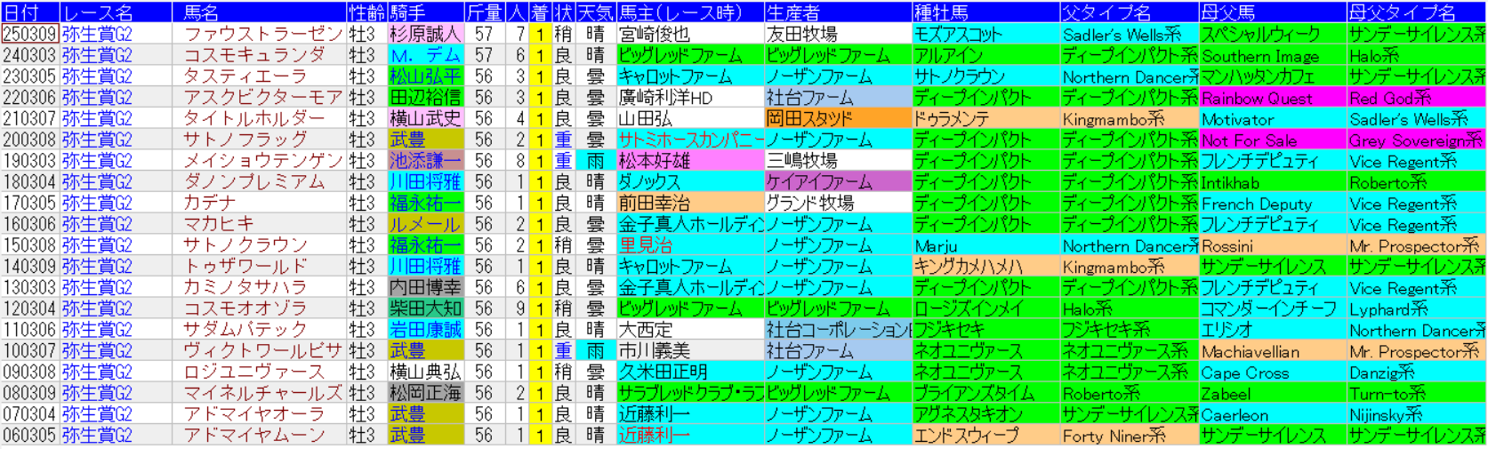 2026年弥生賞の過去20年のデータ一覧!1着馬の血統別成績や前走成績、配当一覧など、必見の情報を公開