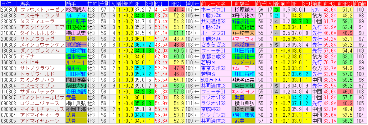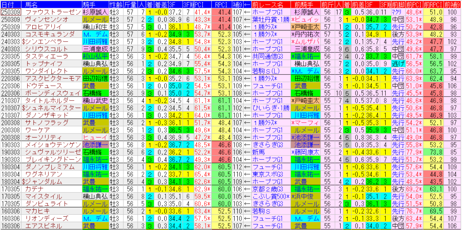 弥生賞の過去20年の成績を集計し、1着馬の馬データ、1着馬の前走成績、前走レース別成績、血統別(種牡馬)成績、配当一覧など必見データ