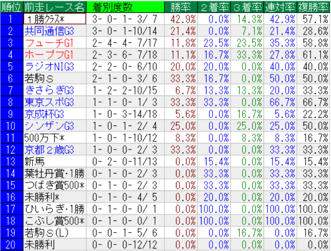 弥生賞の1~3着馬の前走成績(過去10年分)