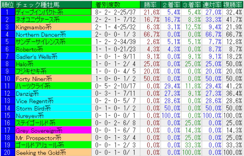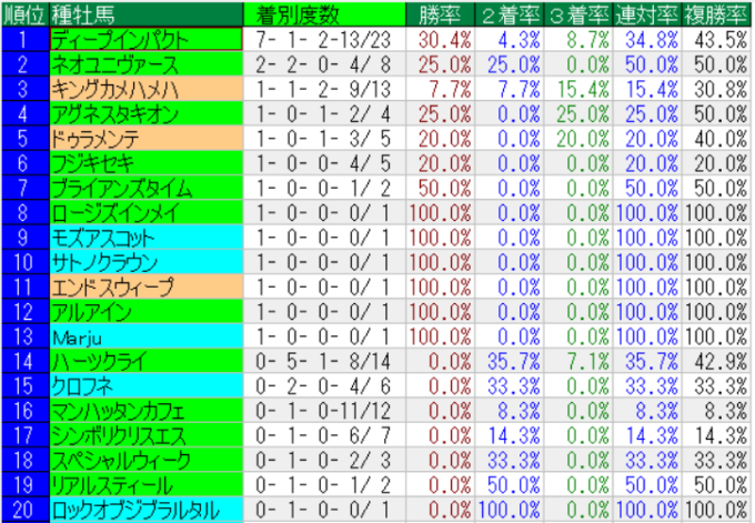 弥生賞の種牡馬系統別成績(上位20位まで)