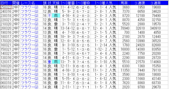 2026年フラワーカップの過去20年のデータ一覧!1着馬の血統別成績や前走成績、配当一覧など、必見の情報を公開