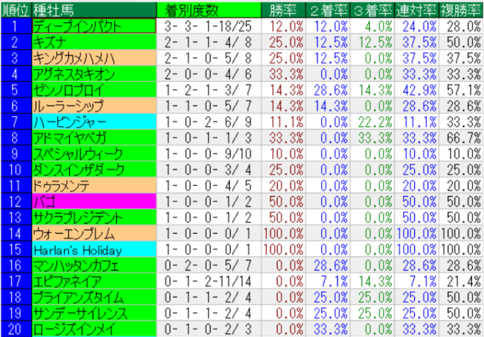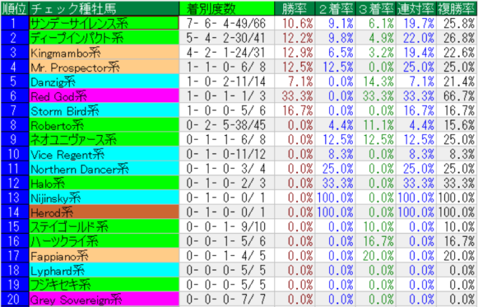 フラワーカップの種牡馬系統別成績(上位20位まで)