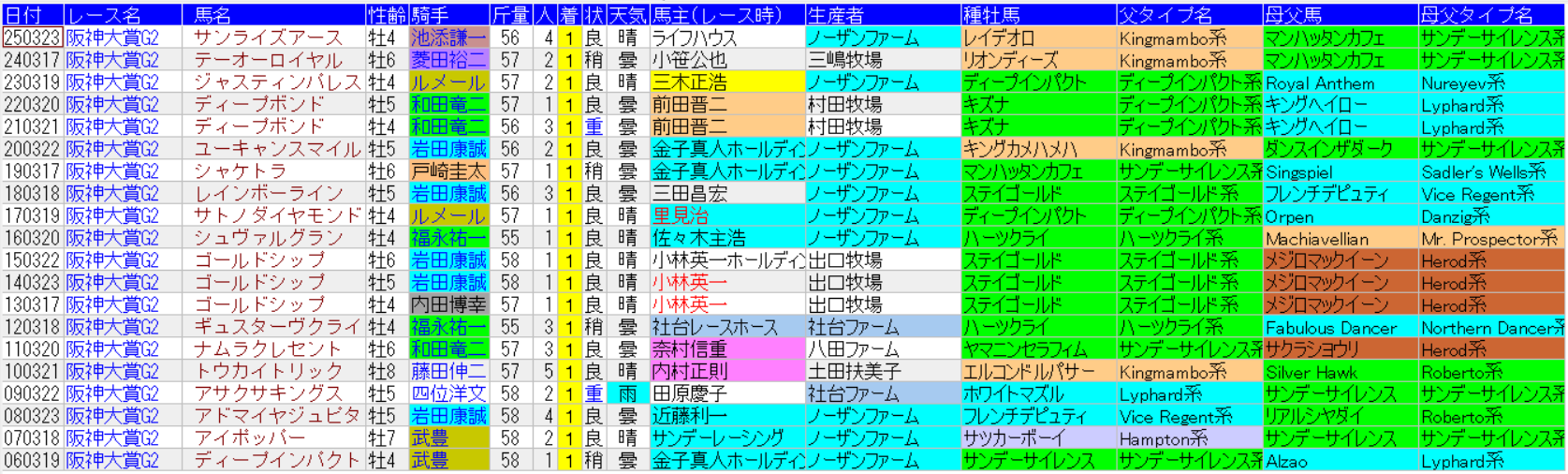 阪神大賞典の1着馬の馬データ