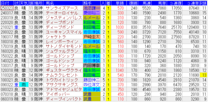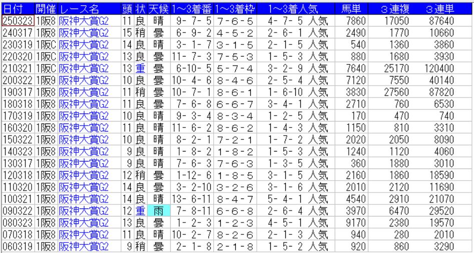 阪神大賞典の配当一覧