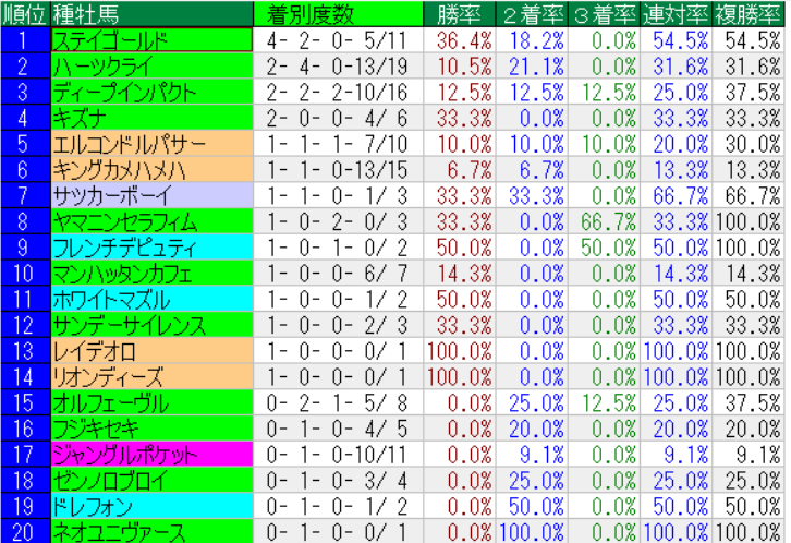 阪神大賞典の種牡馬成績(上位20位まで)