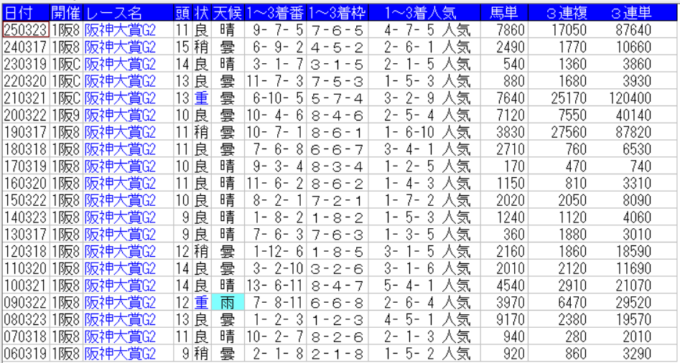 阪神大賞典の配当一覧(出目)