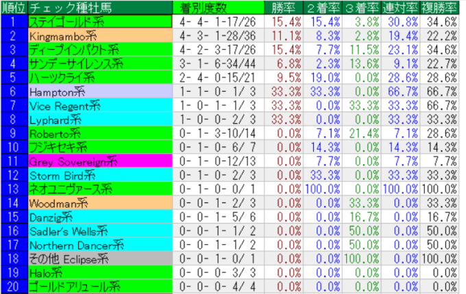 阪神大賞典の種牡馬系統別成績(上位20位まで)