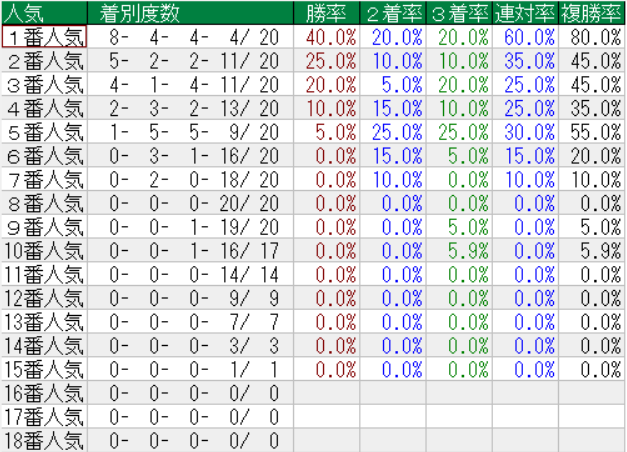 阪神大賞典の人気別成績